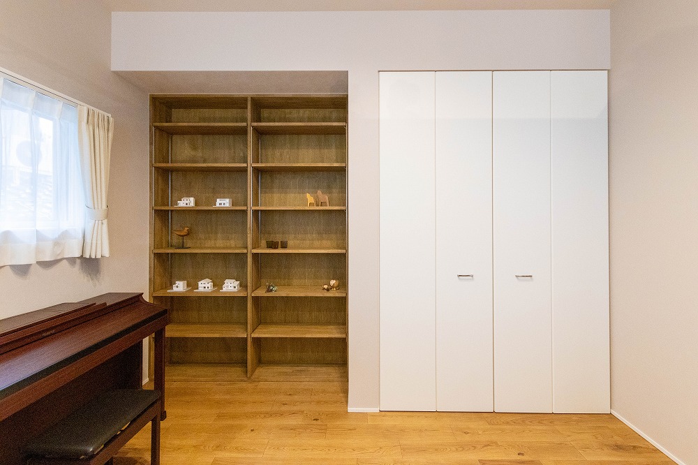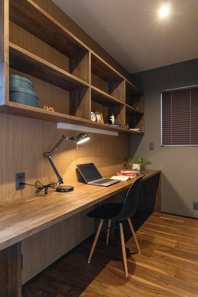 ■ 大容量の本棚とカウンターテーブルがある書斎スペース